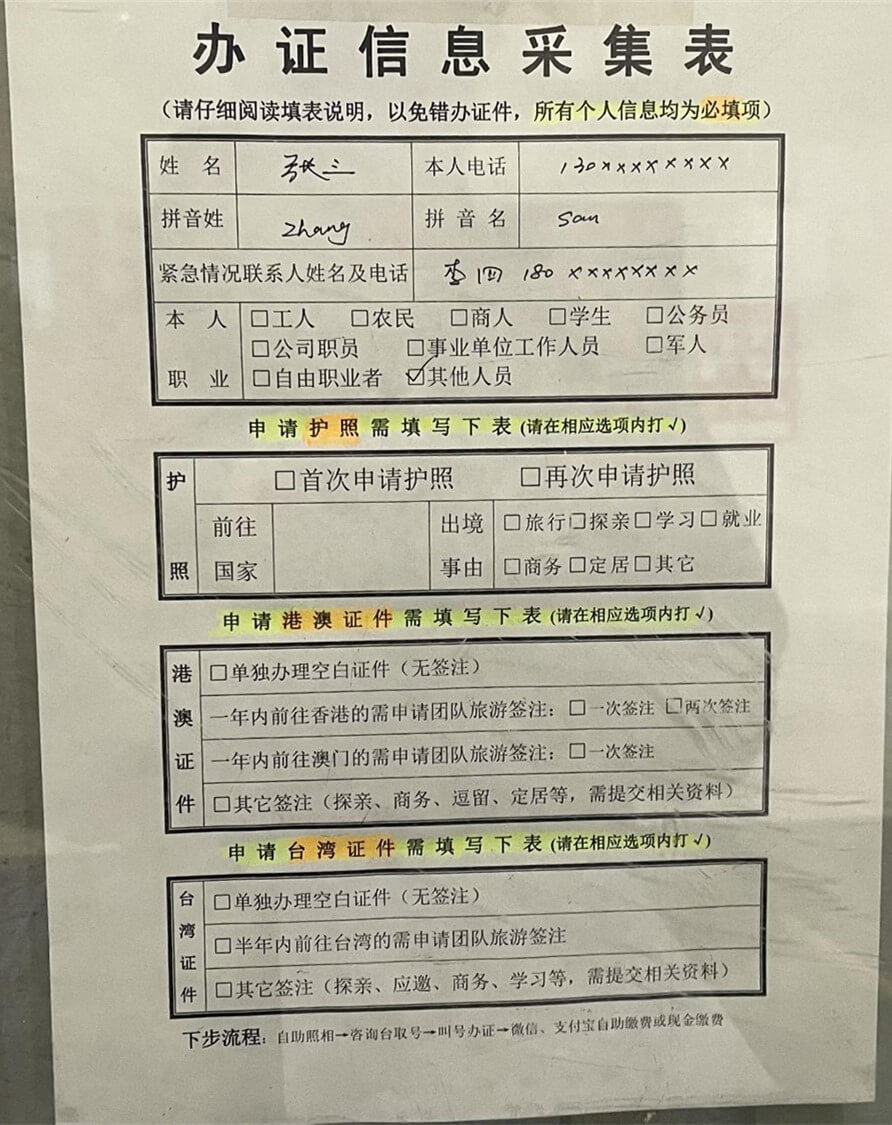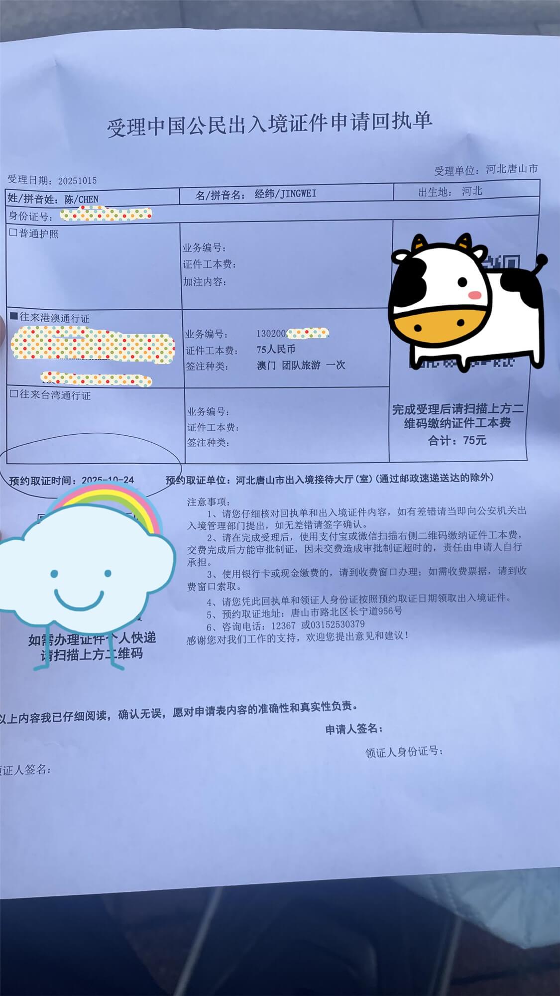 填表(根据你申请的类型进行勾选,唐山只能办理团队签注)